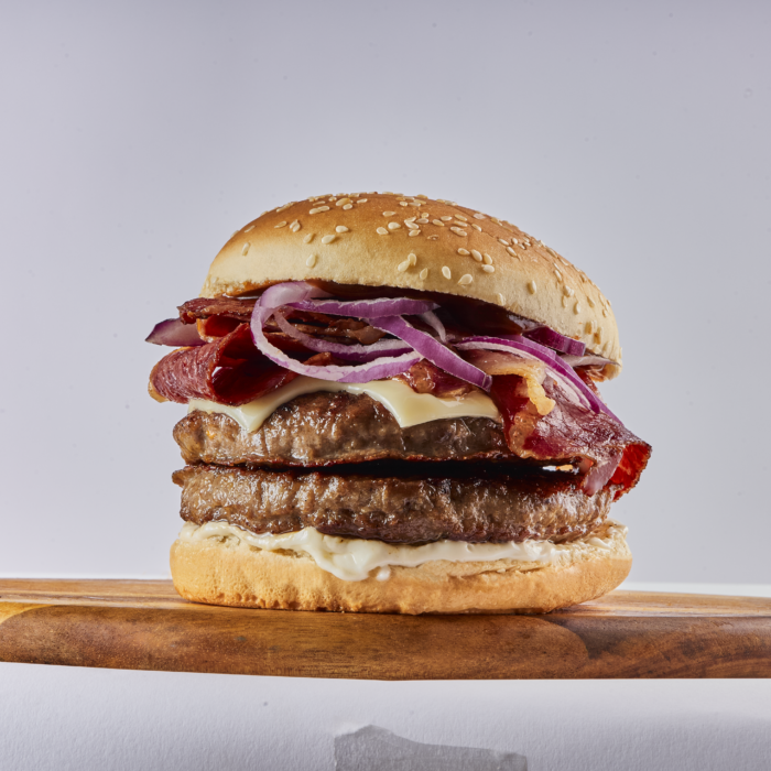 معمول من لحم بقري طبيعي 100% ومحشي جبنة شيدر وبيكون علشان يخلي طعم سندوتشك ميتقاومش.